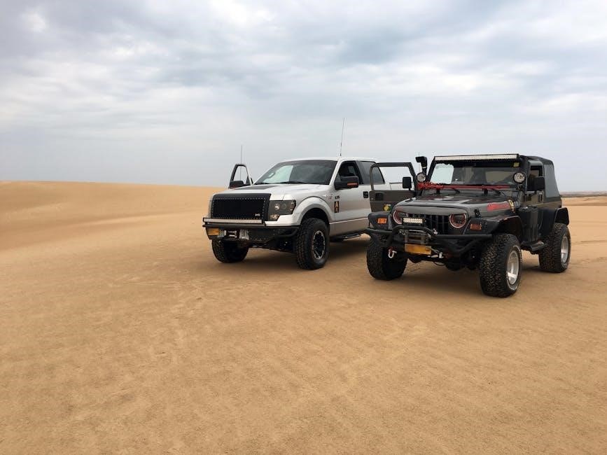 The manual details how each mode adjusts the vehicle’s powertrain, stability control, and other systems. It also provides clear instructions on utilizing controls like the electronic locking rear differential, hill descent control, and trailer sway control. Understanding these features, as outlined in the manual, enhances both driving enjoyment and capability.